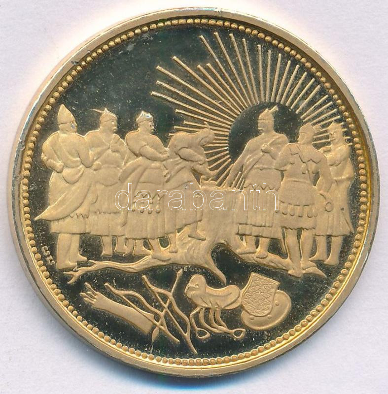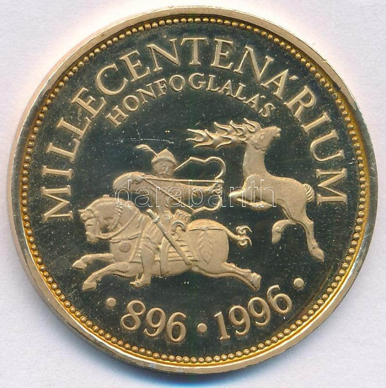 Csóka Zsuzsanna (1962-) 1996. "Millecentenárium Honfoglalás 896-1996" aranyozott, peremén jelzett Ag emlékérem (12,06g/0.925/35mm) T:UNC (eredetileg PP)