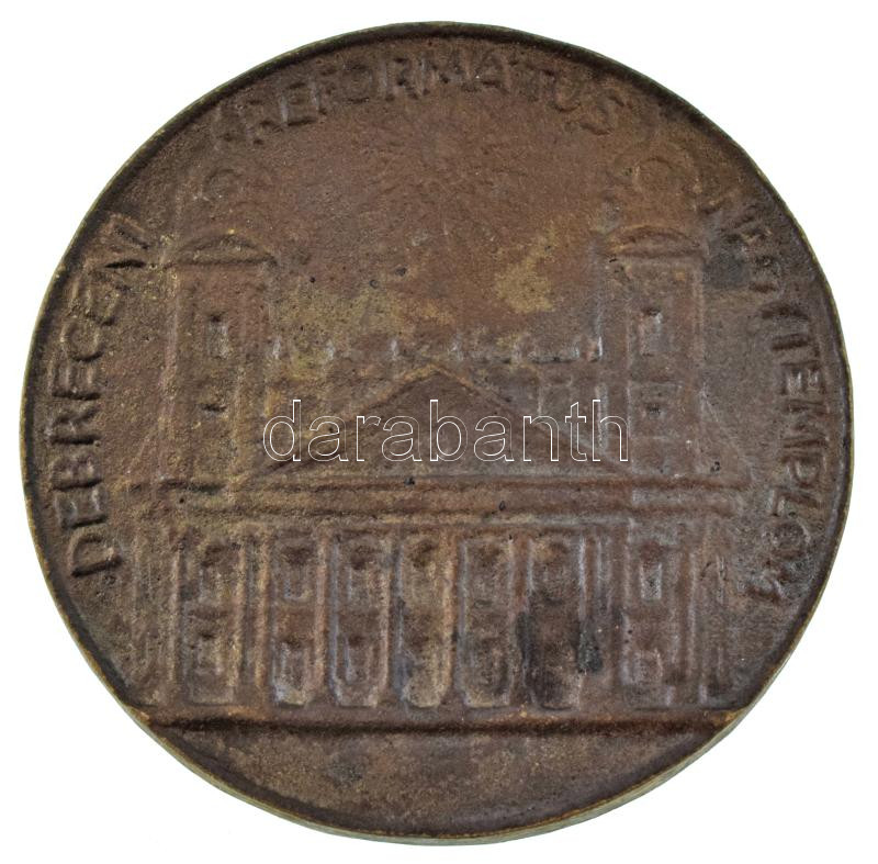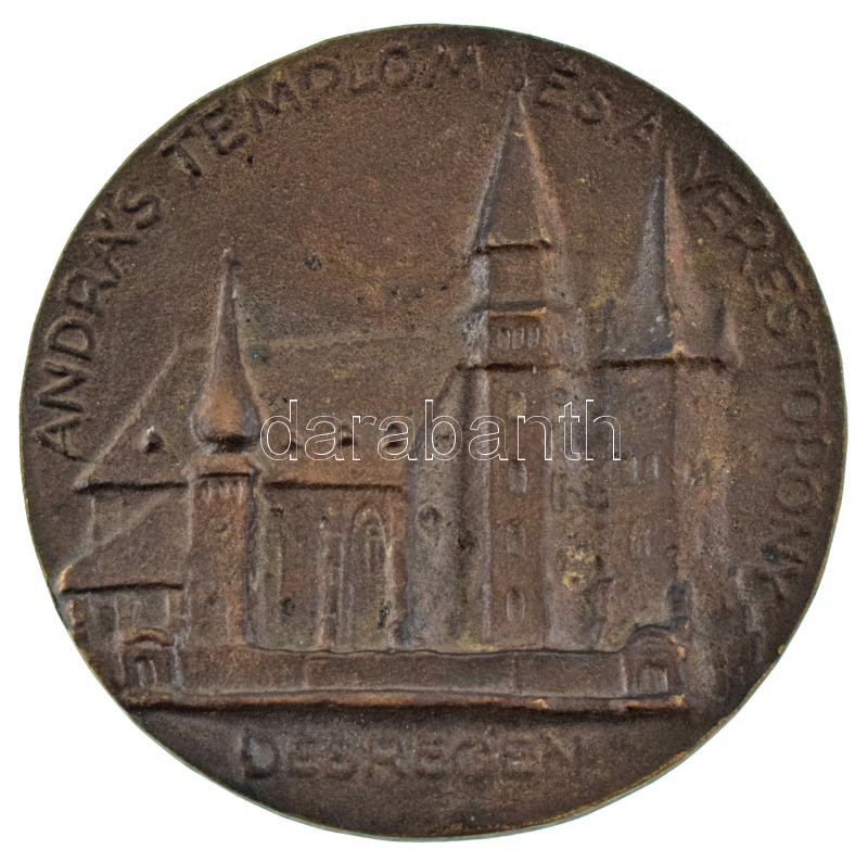 DN "András templom és a Veres torony - Debrecen / Debreceni Református Nagytemplom" kétoldalas, öntött bronz plakett (83mm) T:XF