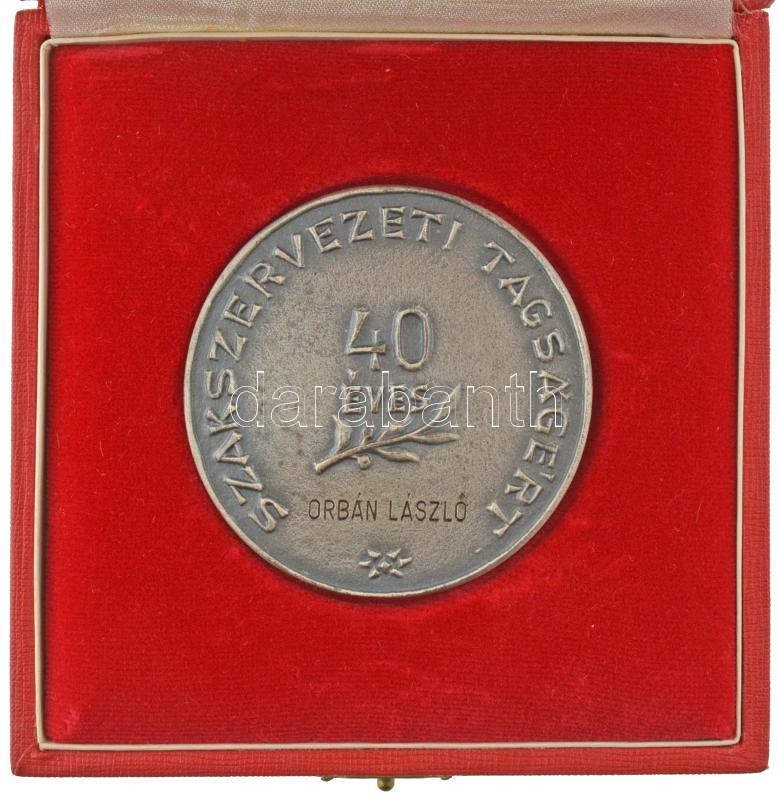 DN "Közalkalmazottak Szakszervezete / 40 éves Szakszervezeti Tagságért" kétoldalas ezüstpatinázott bronz emlékérem dísztokban (68mm) T:AU