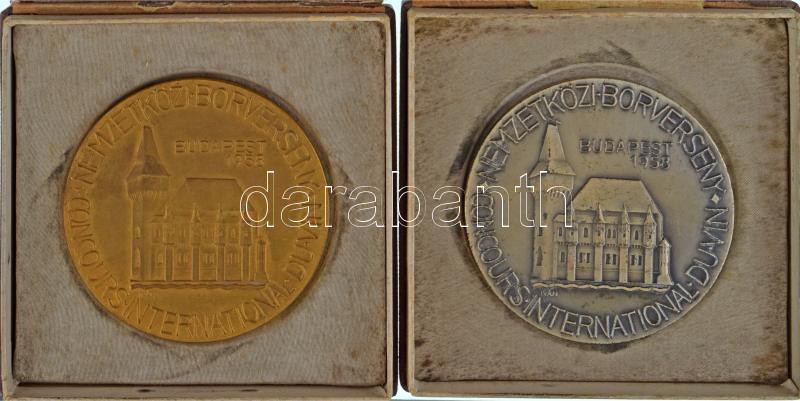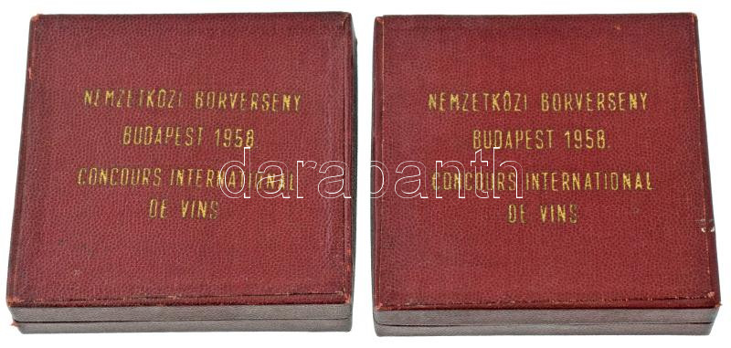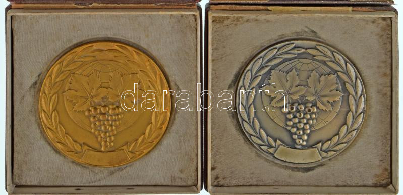 Iván István (1905-1968) 1958. "Concours International du Vins Budapest - Nemzetközi Borverseny" ezüstpatinázott bronz és bronz emlékérem pár, mindkettő eredeti "Nemzetközi Borverseny Budapest 1958 - Concours International de Vins" tokban (71mm) T:AU,XF
