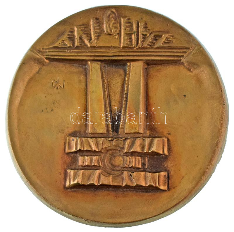Martsa István (1899-1986) ~1970. "Záhony" vasutas témájú egyoldalas öntött bronz plakett, részben cizellálatlan peremmel (109mm) T:AU,XF