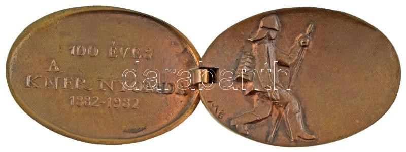 Mladonyiczky Béla (1936-1995) 1982. "100 éves a Kner Nyomda 1882-1982" két darabból álló, kinyitható bronz emlékplakett, dísztokban (94x67mm zárt állapotban) T:UNC
