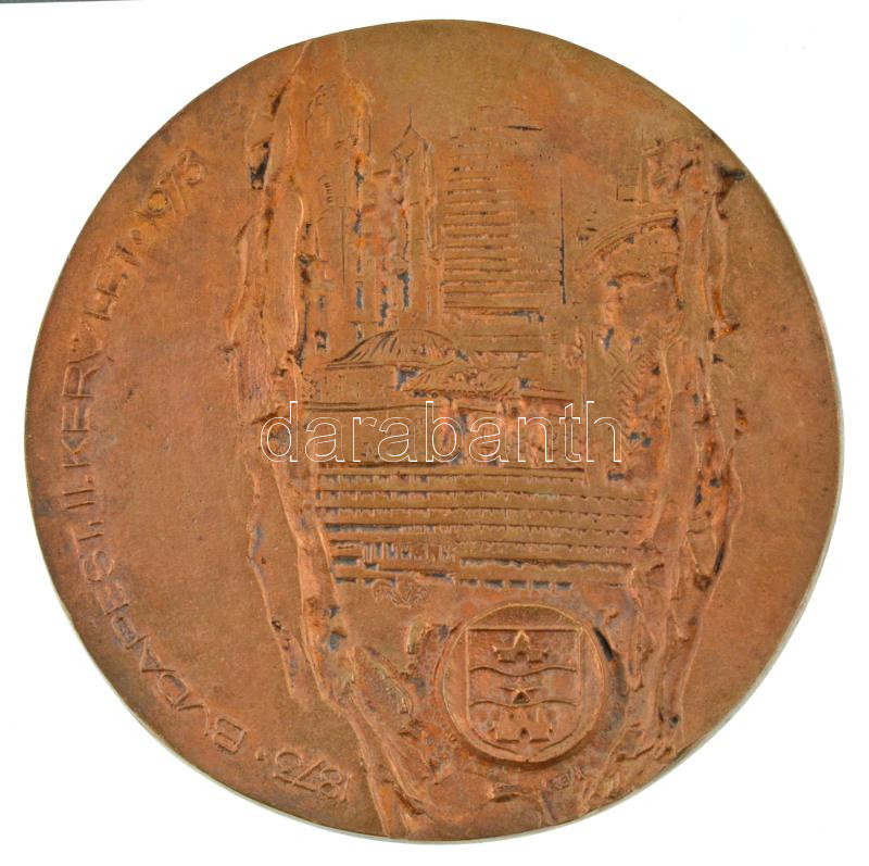 Pátkai Ervin (1937-1985) 1973. "Budapest II. kerület 1873-1973" egyoldalas, öntött bronz emlékplakett (~110-113mm) T:AU