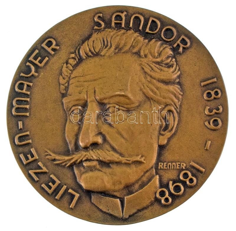 Renner Kálmán (1927-1994) ~1980. "Liezen-Mayer Sándor 1839 - 1898 / Győr - Sopron Megye Képzőművészeti Díja" kétoldalas, öntött bronz díjplakett (85mm) T:AU