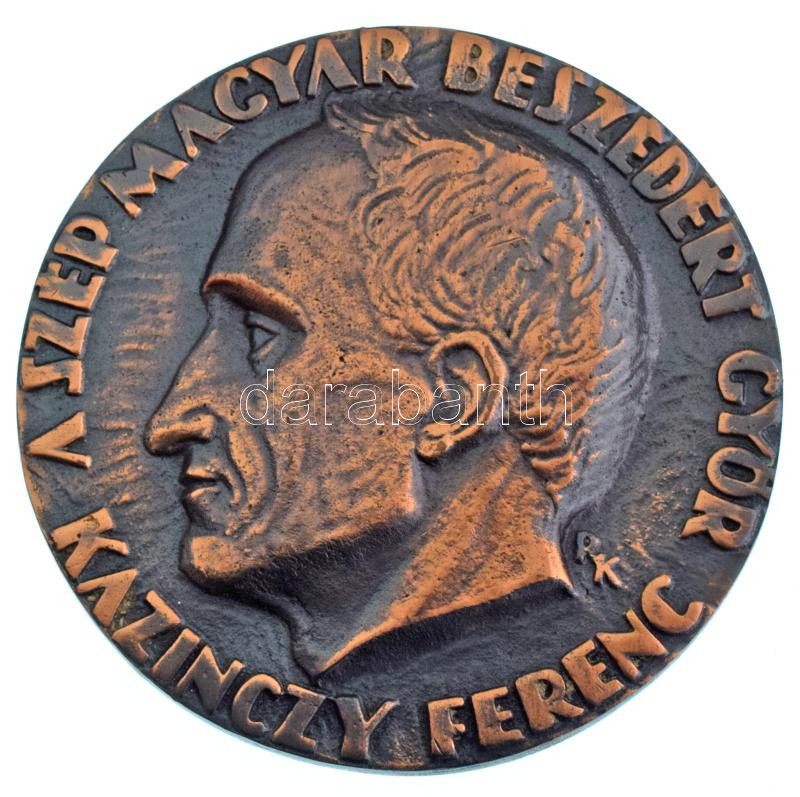 Renner Kálmán (1927-1994) DN "A szép magyar beszédért - Győr - Kazinczy Ferenc / Jót s jól!" kétoldalas, öntött bronz emlékérem (77mm) T:AU