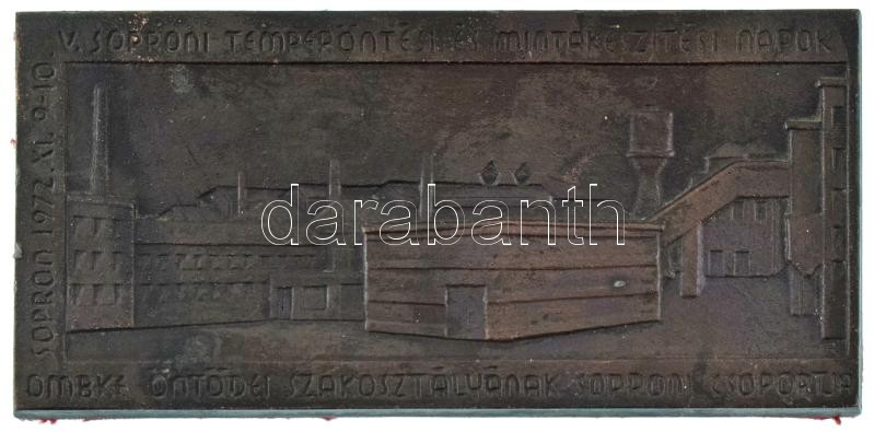 Sopron 1972.XI.9-10. "V. Soproni Temperöntési és Mintakészítési Napok. OMBKE Öntödei Szakosztályának Soproni Csoportja" öntött bronz plakett, hátoldalán filc bevonattal (73x154mm) T:AU