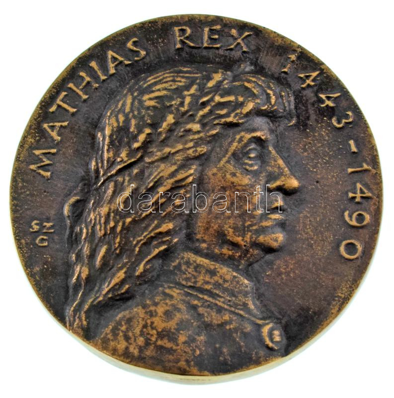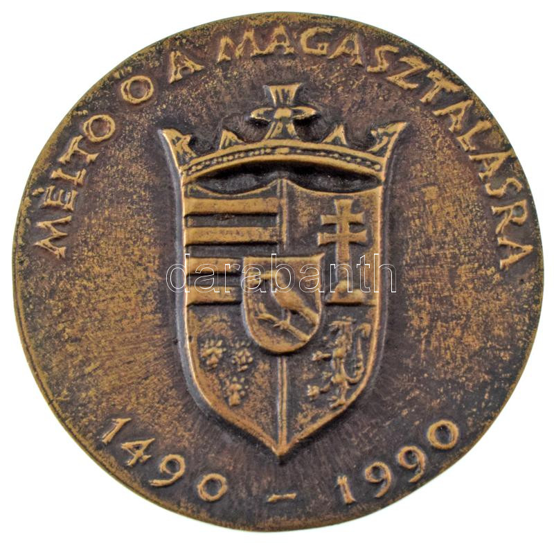Szabó Gábor (1940-) 1990. "Mátyás király 1443-1490 / Méltó a magasztalásra 1490-1990" kétoldalas öntött bronz emlékérem (82mm) T:XF