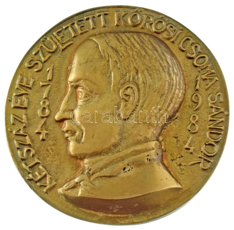 Tőrös Gábor (1934-2021) 1984. "Kétszáz éve született Kőrösi Csoma Sándor 1784-1984" egyoldalas, öntött bronz plakett (115mm) T:XF