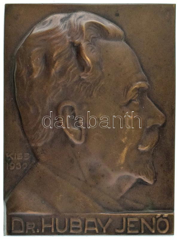 Zombori Kiss István (1902-1953) "Dr. Hubay Jenő" egyoldalas bronz lemezplakett, hátoldalon rögzítésre szolgáló csavarral (117x88cm) T:AU,XF