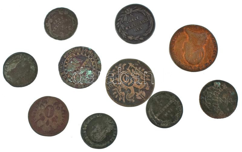 Beschreibung: 1774-1816. 10db-os Habsburg Cu krajcártétel, közte 1800E 3kr Cu "I. Ferenc" T:F,VG
