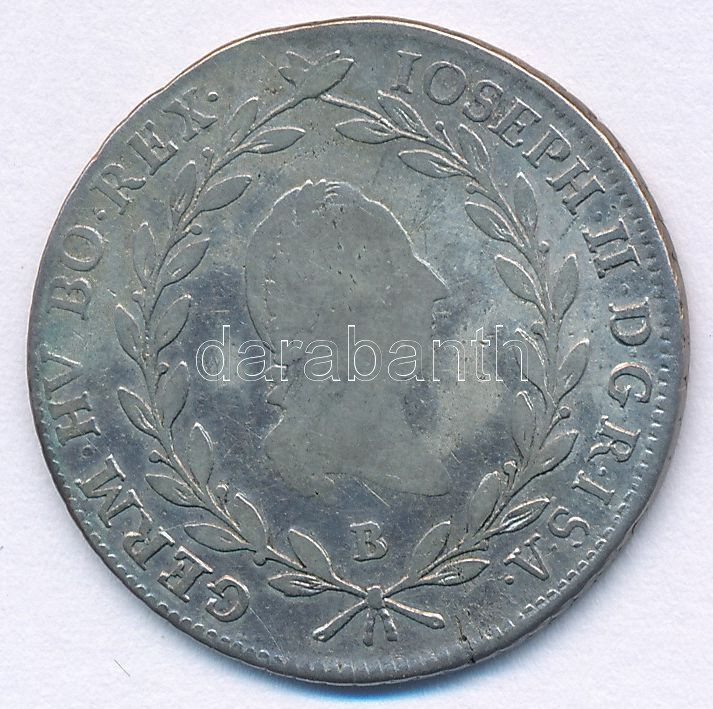 Beschreibung: 1787B 20kr Ag "II. József" T:VF,F patina