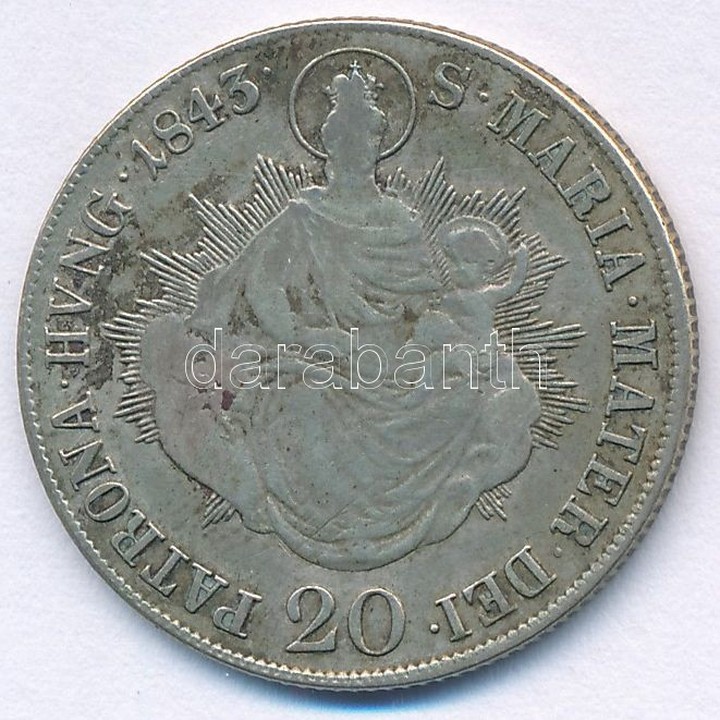 Huszár:2081., Un... https://www.darabanth.com/de/472-Fernauktion/472.0/Numismatik/Ungarische-Munzen-und-Munzen-mit-ungarischem-Munzzeichen~2000009/1843B-20kr-Ag-V-Ferdinand-TVF-F-patina-Huszar2081-Unger-III-1419~II3197493