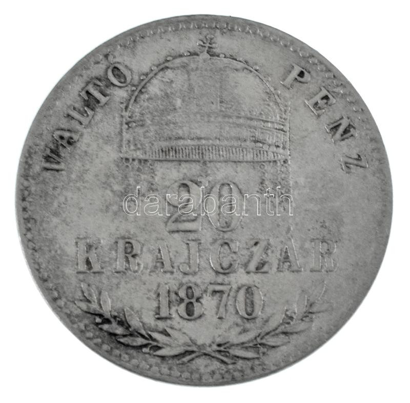 1870KB 20kr Ag "Váltó Pénz" T:VF,F Adamo M11.1 https://www.darabanth.com/de/472-Fernauktion/472.0/Numismatik/Ungarische-Munzen-und-Munzen-mit-ungarischem-Munzzeichen~2000009/1870KB-20kr-Ag-Valto-Penz-TVF-F-Adamo-M111~II3110221