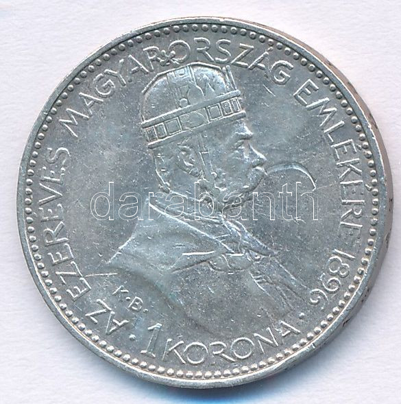 Adamo K5.2 https://www.darabanth.com/de/472-Fernauktion/472.0/Numismatik/Ungarische-Munzen-und-Munzen-mit-ungarischem-Munzzeichen~2000009/1896KB-1K-Ag-Millennium-TVF-ph-karc-Adamo-K52~II3193869