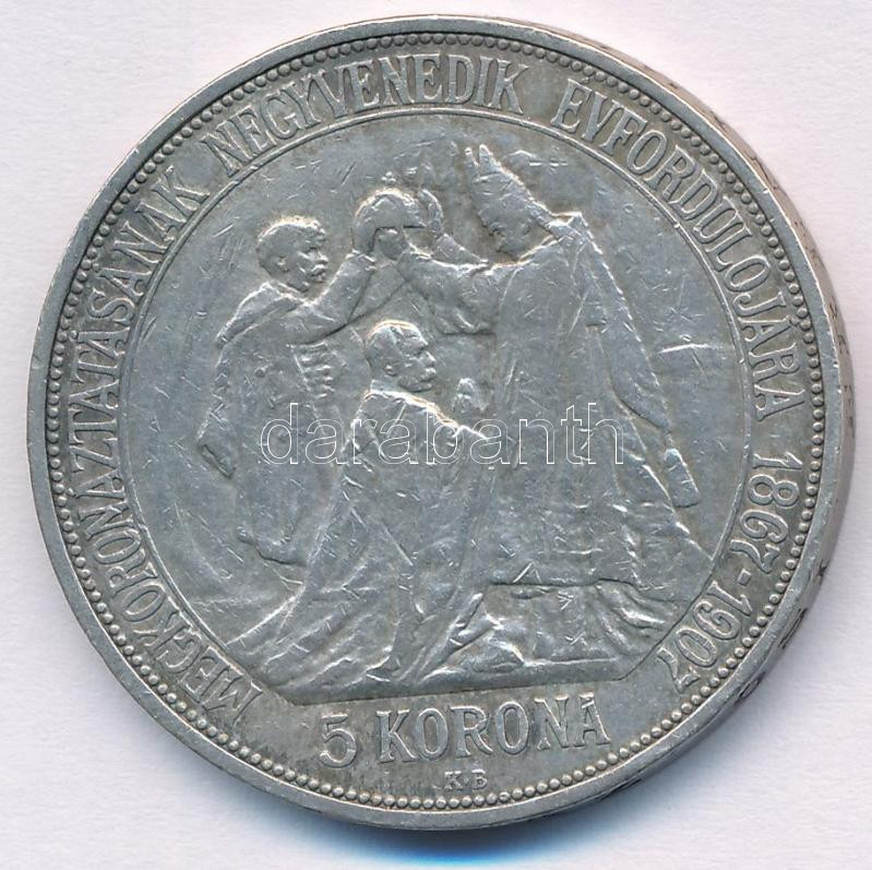 Beschreibung: 1907KB 5K Ag "Ferenc József megkoronázásának 40. évfordulója" T:XF,VF ph., kisebb karcok