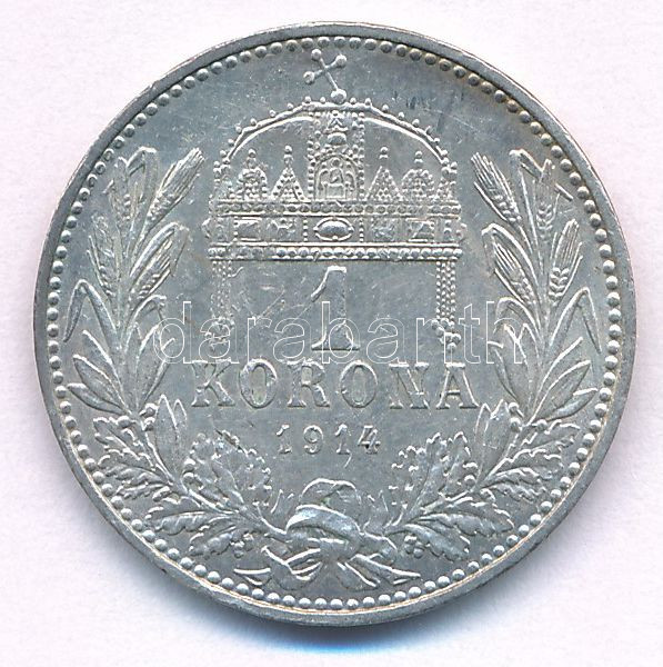 1914KB 1K Ag "Ferenc József" T:XF karc Adamo K5.1 https://www.darabanth.com/de/472-Fernauktion/472.0/Numismatik/Ungarische-Munzen-und-Munzen-mit-ungarischem-Munzzeichen~2000009/1914KB-1K-Ag-Ferenc-Jozsef-TXF-karc-Adamo-K51~II3193810