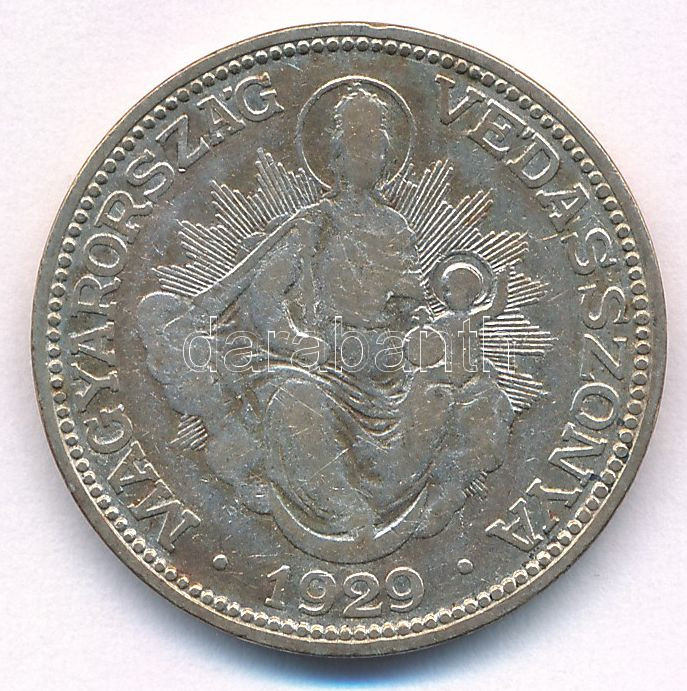 1929. 2P Ag "Madonna" T:F patina Adamo P7 https://www.darabanth.com/de/472-Fernauktion/472.0/Numismatik/Ungarische-Munzen-und-Munzen-mit-ungarischem-Munzzeichen~2000009/1929-2P-Ag-Madonna-TF-patina-Adamo-P7~II3194077