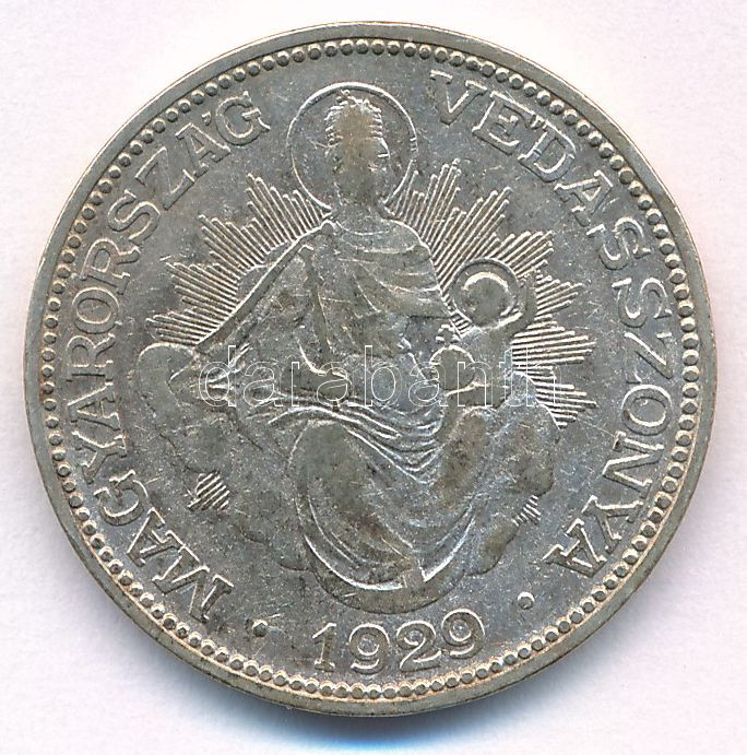 1929. 2P Ag "Madonna" T:F patina Adamo P7 https://www.darabanth.com/de/472-Fernauktion/472.0/Numismatik/Ungarische-Munzen-und-Munzen-mit-ungarischem-Munzzeichen~2000009/1929-2P-Ag-Madonna-TF-patina-Adamo-P7~II3194080