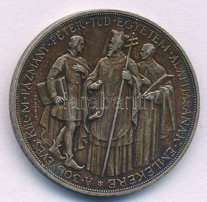1935. 2P Ag "Pázmány" T:AU,XF patina