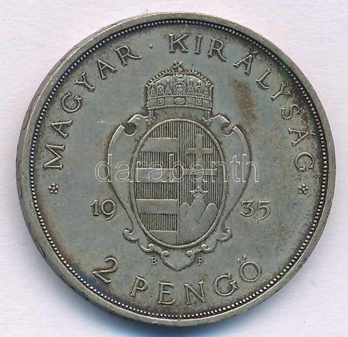 Adamo P7.1 https://www.darabanth.com/de/472-Fernauktion/472.0/Numismatik/Ungarische-Munzen-und-Munzen-mit-ungarischem-Munzzeichen~2000009/1935-2P-Ag-Pazmany-TAU-XF-patina-Adamo-P71~II3195601