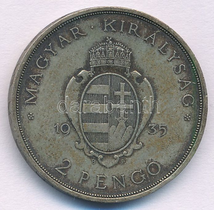 Adamo P7.1 https://www.darabanth.com/de/472-Fernauktion/472.0/Numismatik/Ungarische-Munzen-und-Munzen-mit-ungarischem-Munzzeichen~2000009/1935-2P-Ag-Pazmany-TAU-XF-patina-Adamo-P71~II3195603