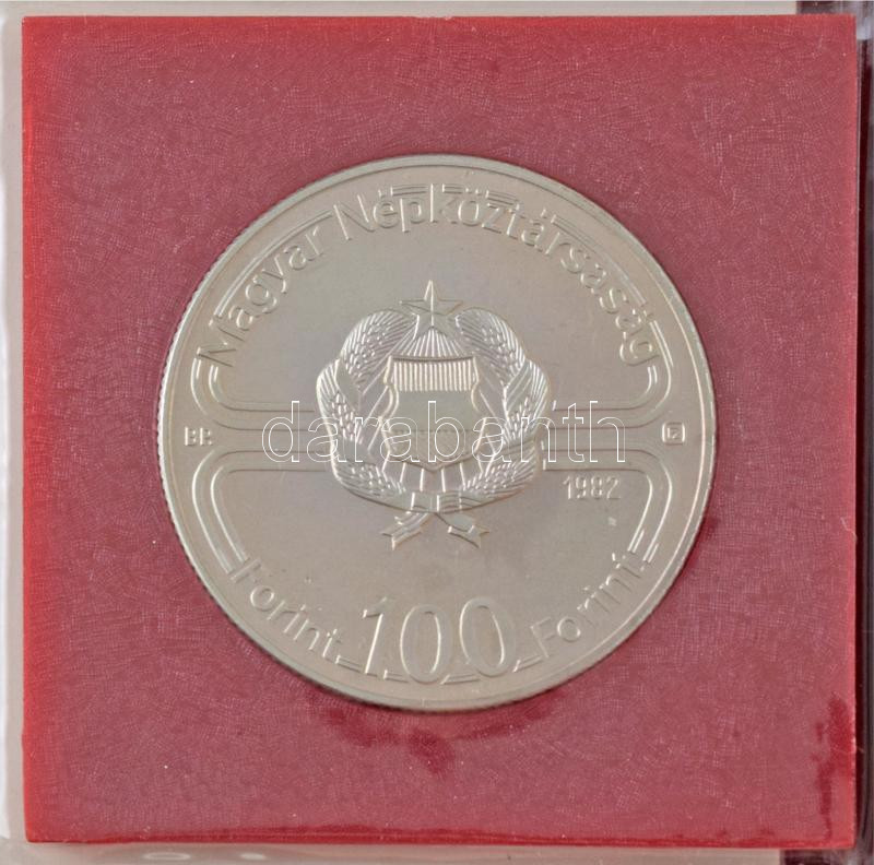 1982. 100Ft Cu-Ni "Labdarúgó világbajnokság 1982" eredeti mű... https://www.darabanth.com/de/472-Fernauktion/472.0/Numismatik/Ungarische-Munzen-und-Munzen-mit-ungarischem-Munzzeichen~2000009/1982-100Ft-Cu-Ni-Labdarugo-vilagbajnoksag-1982-eredeti-mubor-tokban-tanusitvannyal-TUN~II3194222