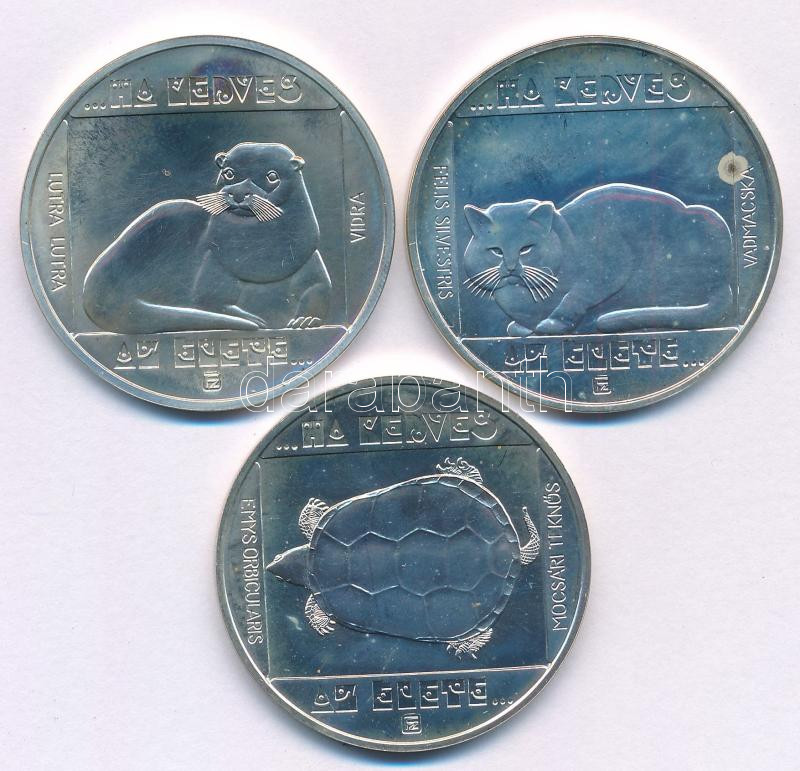 Beschreibung: 1985. 200Ft Ag (3xklf) "Természetvédelem - Mocsári Teknős, Vadmacska, Vidra" T:UNC,AU fo.