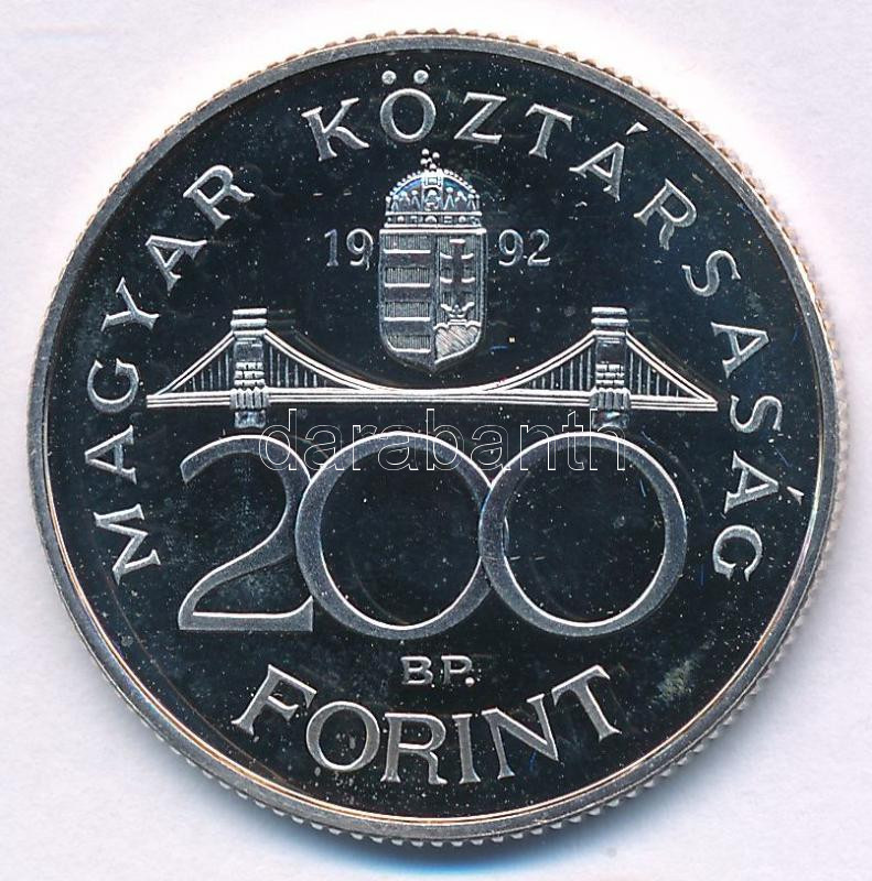 Adamo F13 https://www.darabanth.com/de/472-Fernauktion/472.0/Numismatik/Ungarische-Munzen-und-Munzen-mit-ungarischem-Munzzeichen~2000009/1992-200Ft-Ag-MNB-TPP-fo-halovany-patina--Adamo-F13~II3194034