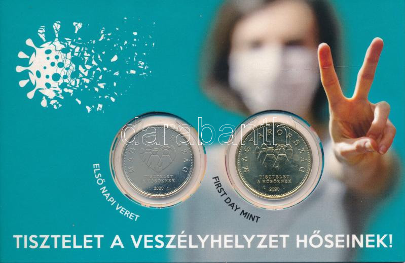 Beschreibung: 2020. 10Ft Cu-Ni + 20Ft Cu-Ni-Zn "Tisztelet a hősöknek" elsőnapi veret, sorszámozott "04917" bliszterben T:UNC
