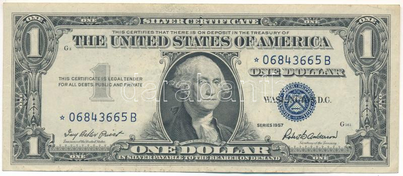 USA 1957-1961. (1957) 1 Dollar "Silver Certificate - Small size", blue seal, "Ivy Baker Priest - Robert B. Anderson" star before serial number - replacement note C:F