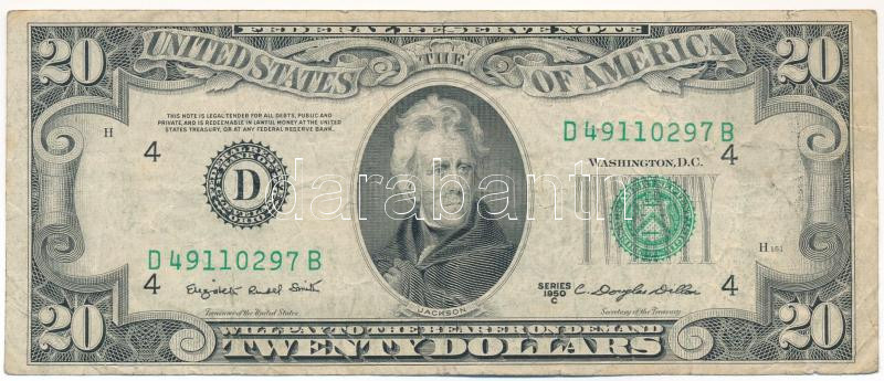 Amerikai Egyesült Államok 1961-1962 (1950C) 20$ "Federal Reserve Note" zöld pecsét "Elizabeth Rudel Smith - Clarence Douglas Dillon" T:F