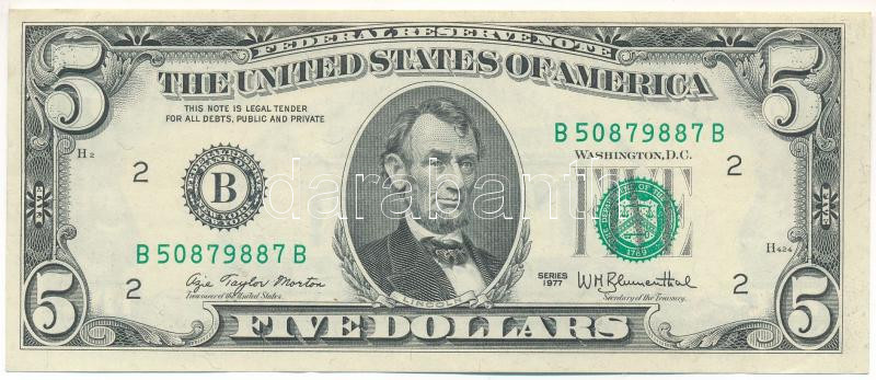 Amerikai Egyesült Államok 1977. 5$ "Federal Reserve Note" zöld pecsét "Azie Taylor Morton - Werner Michael Blumenthal" T:F szép papír