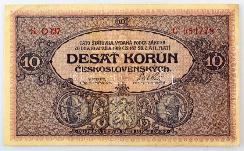 Csehszlovákia 1919. 10K "O 137 654778" T:F bal felső sarokban ~4mm-es szakadás
