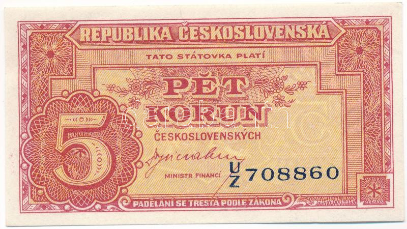 Czechoslovakia 194... https://www.darabanth.com/de/472-Fernauktion/472.0/Numismatik/Weltweit-Banknoten~2000016/Csehszlovakia-1945-5K-UZ-708860-TI--Czechoslovakia-1945-5-Korun-UZ-708860-CUNC-Krause-59~II3194796