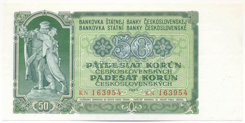 Csehszlovákia 1953. 50K három lyukkal perforált minta "KN 163954&... https://www.darabanth.com/de/472-Fernauktion/472.0/Numismatik/Weltweit-Banknoten~2000016/Csehszlovakia-1953-50K-harom-lyukkal-perforalt-minta-KN-163954-TUNC--Czechoslovakia-1953-50~II3194743