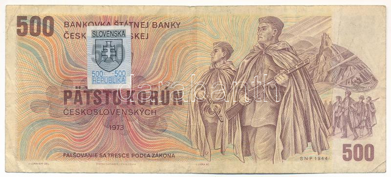 Beschreibung: Csehszlovákia 1993. (1973) 500K szlovák bélyeggel T:F Czechoslovakia 1993. (1973) 500 Korun with Slovak stamp C:F