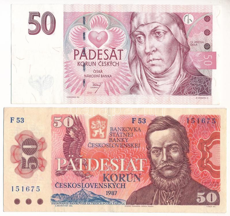 Czechoslovakia /... https://www.darabanth.com/de/472-Fernauktion/472.0/Numismatik/Weltweit-Banknoten~2000016/Csehszlovakia-Csehorszag-1987-50K-plus-1997-50K-TF-Czechoslovakia-Czech-Republic-1987-50-Kor~II3194882