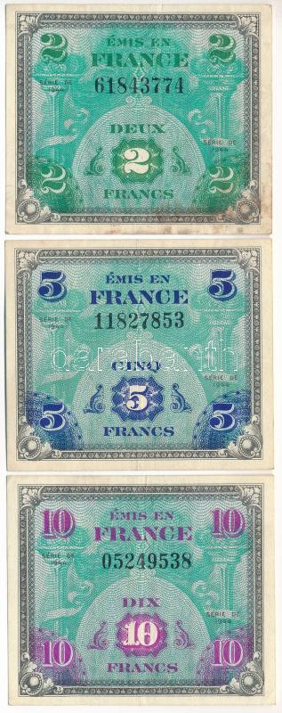 Franciaország / Szövetséges katonai kiadás 1944. 2Fr + 5Fr + 10Fr T:F folt