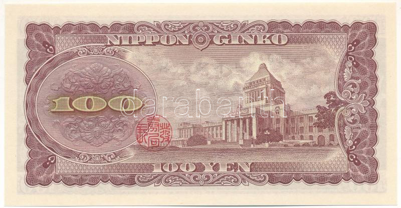 Japán DN (1953) 100Y T:UNC Japan ND (1953) 100 Yen C:UNC Krause P#90 https://www.darabanth.com/de/472-Fernauktion/472.0/Numismatik/Weltweit-Banknoten~2000016/Japan-DN-1953-100Y-TUNC-Japan-ND-1953-100-Yen-CUNC-Krause-P2390~II3199814