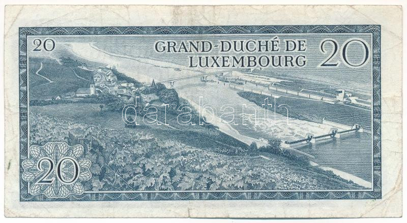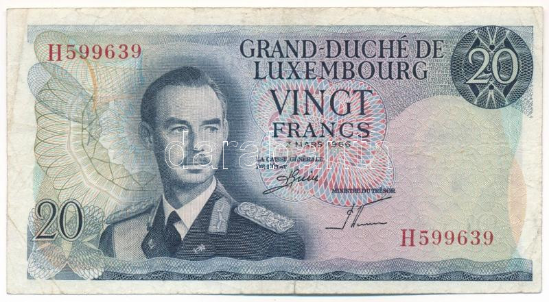 Luxembourg 1966. 20 Francs C... https://www.darabanth.com/de/472-Fernauktion/472.0/Numismatik/Weltweit-Banknoten~2000016/Luxembrug-1966-20Fr-TF-VG-kis-szakadas-Luxembourg-1966-20-Francs-CF-VG-small-tear-Krause-P2354~II3195264