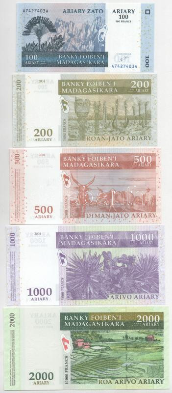 Beschreibung: Madagaszkár 2004-2007. 100A-2000A (5xklf) T:UNC,AU