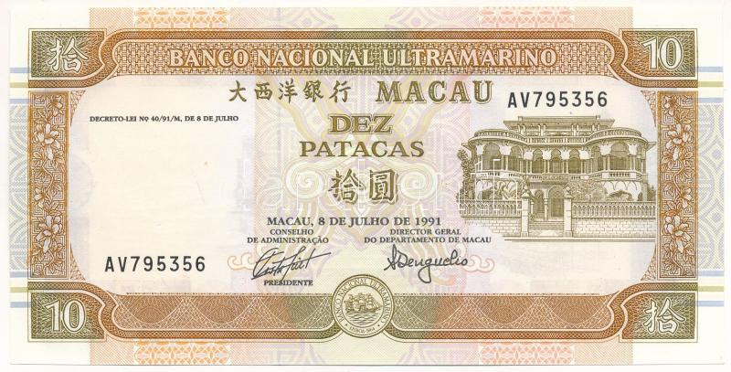 Krause P#65 https://www.darabanth.com/de/472-Fernauktion/472.0/Numismatik/Weltweit-Banknoten~2000016/Makao-1991-10P-TAU-Macau-1991-10-Patacas-CAU-Krause-P2365~II3199646