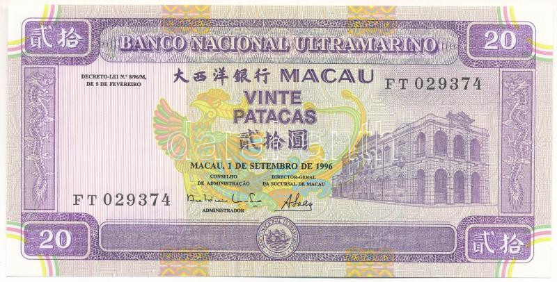 Krause P#66 https://www.darabanth.com/de/472-Fernauktion/472.0/Numismatik/Weltweit-Banknoten~2000016/Makao-1996-20P-TUNC-Macau-1996-20-Patacas-CUNC-Krause-P2366~II3199648