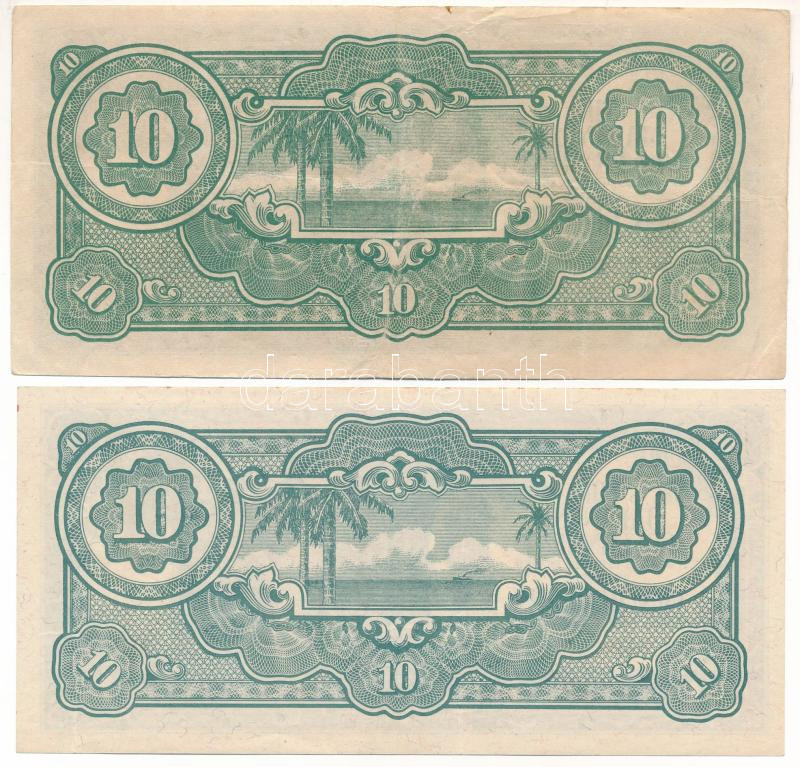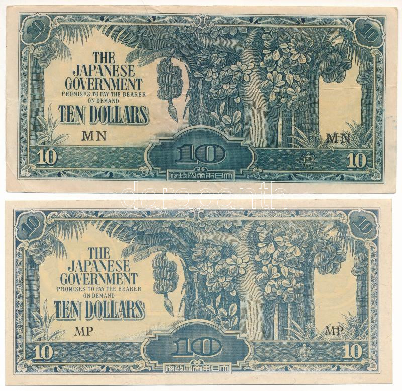 Malajzia / Japán megszállás DN (1942-1944) 10$ "Banános Bankjegy" (2xklf) az egyik nem vízjeles papíron, korabeli angolszász hamisítvány T:F