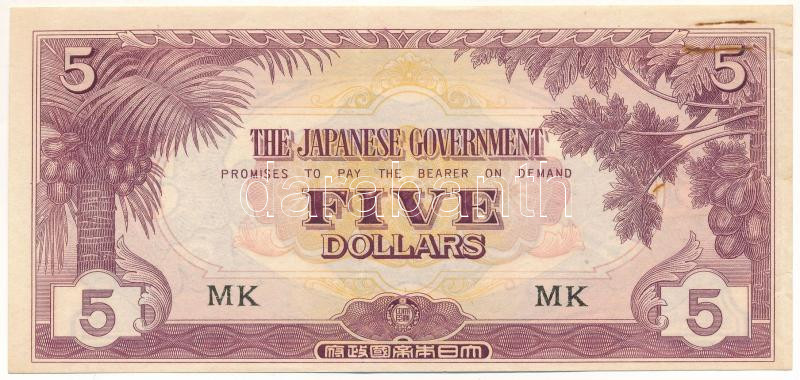 Malajzia / Japán megszállás DN (1942-1945) 5$ "Banános Bankjegy", "MK" T:F gemkapocs nyom, de erős papír