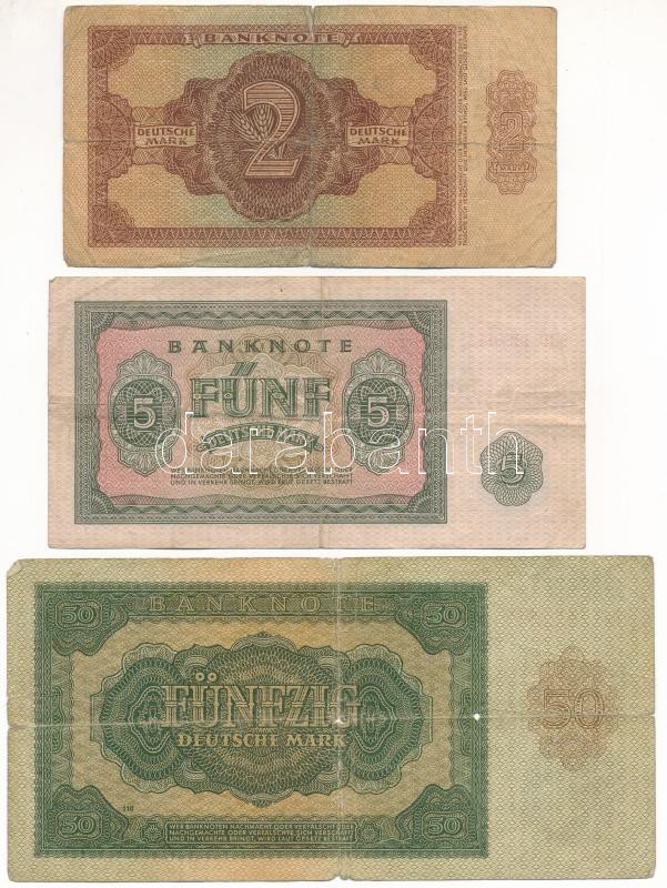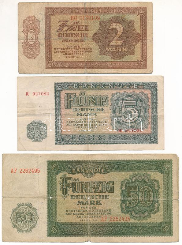 Beschreibung: Német Demokratikus Köztársaság 1948. 2M + 50M + 1955. 5M T:F-VG German Democratic Republic 1948. 2 Mark + 50 Mark + 1955. 5 Mark C:F-VG