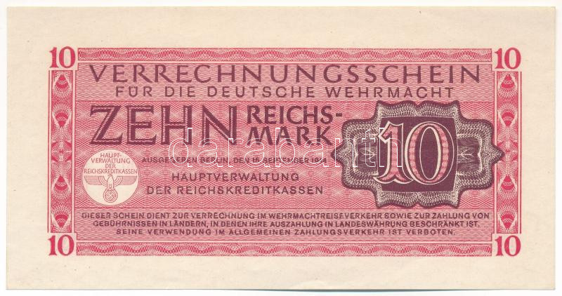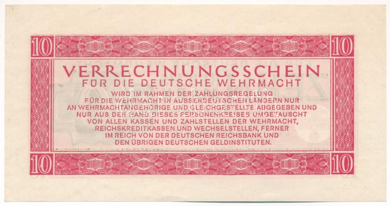German Third Reich / Deutsche Wehrmacht 1944. 10 Mark C:AU corner folds