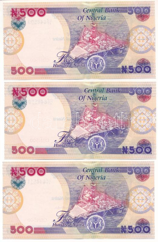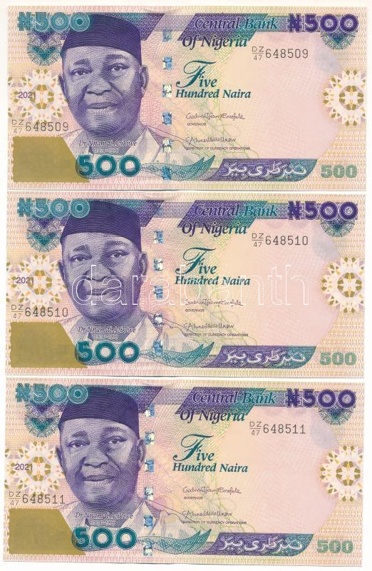 Nigeria 2021. 500 Naira ... https://www.darabanth.com/de/472-Fernauktion/472.0/Numismatik/Weltweit-Banknoten~2000016/Nigeria-2021-500N-3x-sorszamkovetok-TUNC-Nigeria-2021-500-Naira-3x-consecutive-serials-C~II3194932