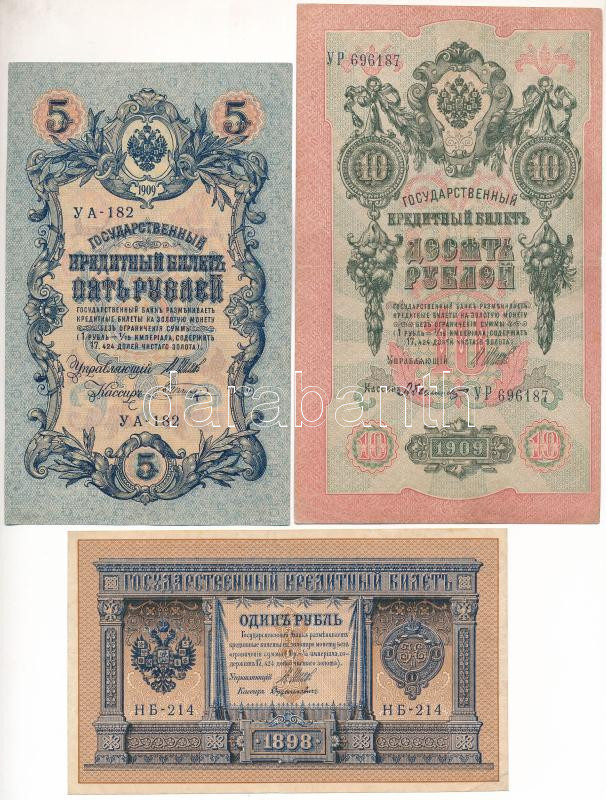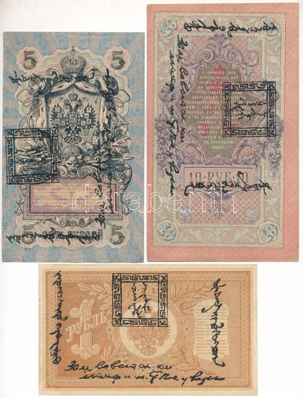 Orosz Birodalom 1912-1917. (1898) 1R + (1909) 5R + 10R Szign.: Shipov. Mindegyik hátoldalán valószínűleg hamis "Tannu Tuva" felülbélyegzéssel. T:F szép papír