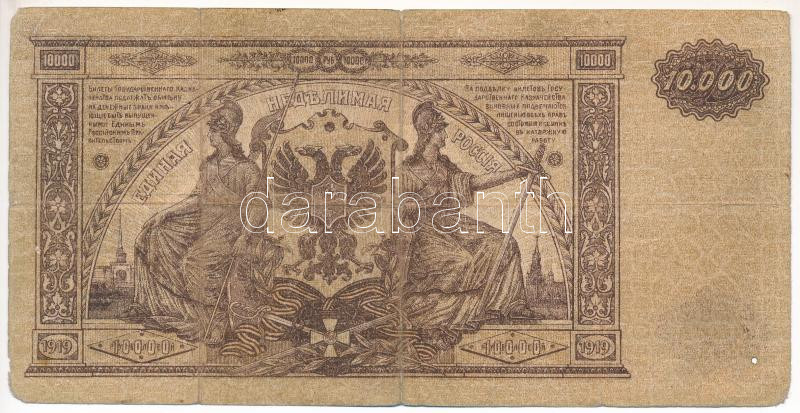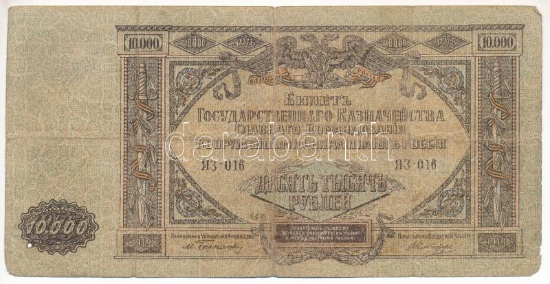 Orosz Polgárháború / Dél-Oroszország / Vrangel hadserege 1919. 10.000R T:F,VG lyuk